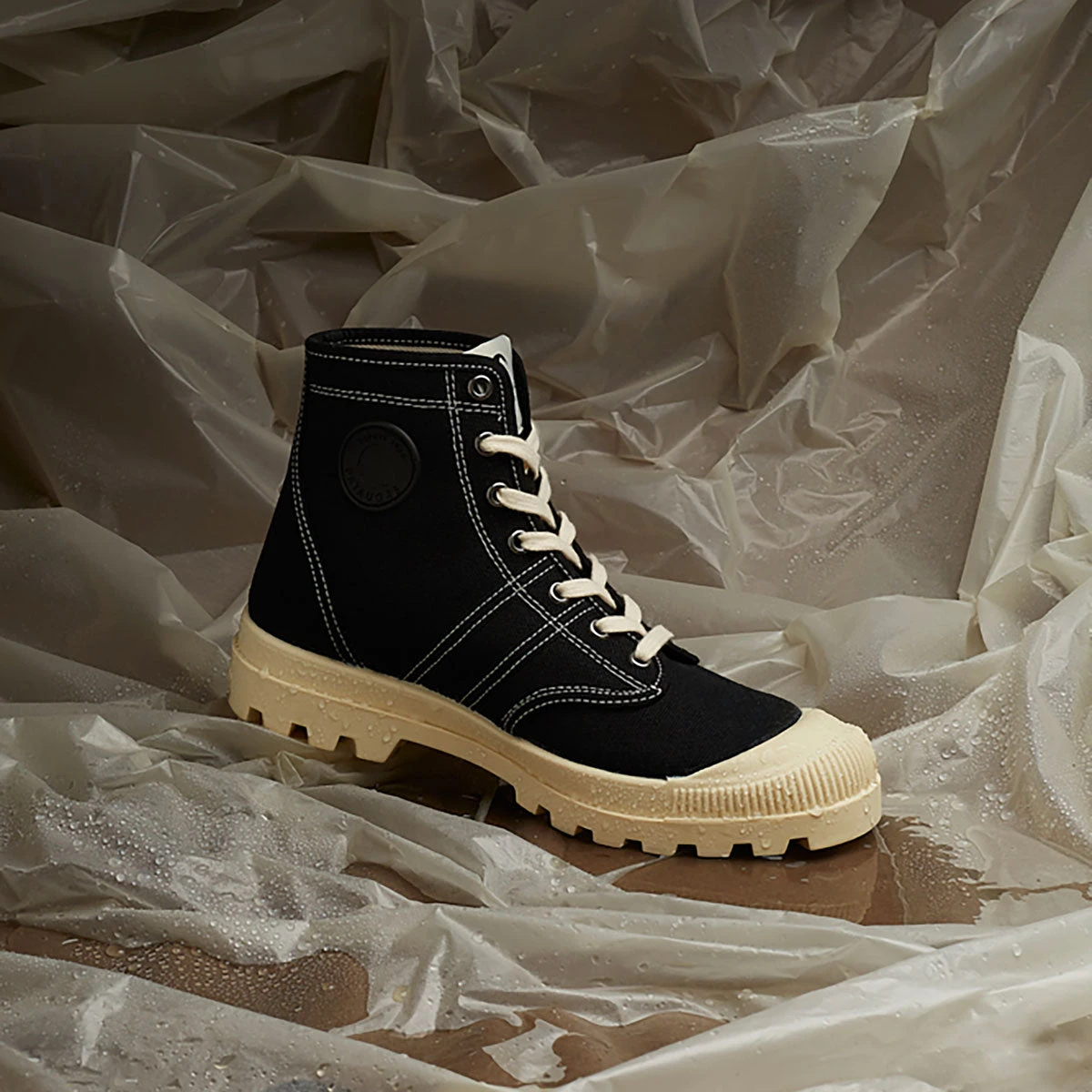 Optez cette saison pour la version de la boots femme Authentique revisitée avec une toile recyclée robuste et légère. Cette boots est vulcanisée dans une semelle en caoutchouc naturel ce qui la rend plus souple et plus responsable. Ses surpiqûres blanches rehaussent sa toile noire pour un rendu vintage et moderne.