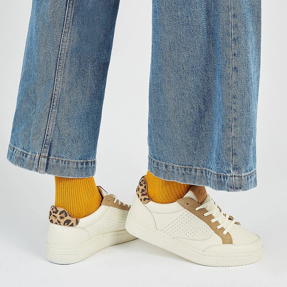 Adoptez sans plus attendre la sneaker femme BASALTE. Cette chaussure en cuir allie tendance et confort. Munie d’une tige en cuir blanc lumineux, cette basket est montée sur une semelle épaisse en caoutchouc naturel. Elle est également féminine grâce à son talon léopard.