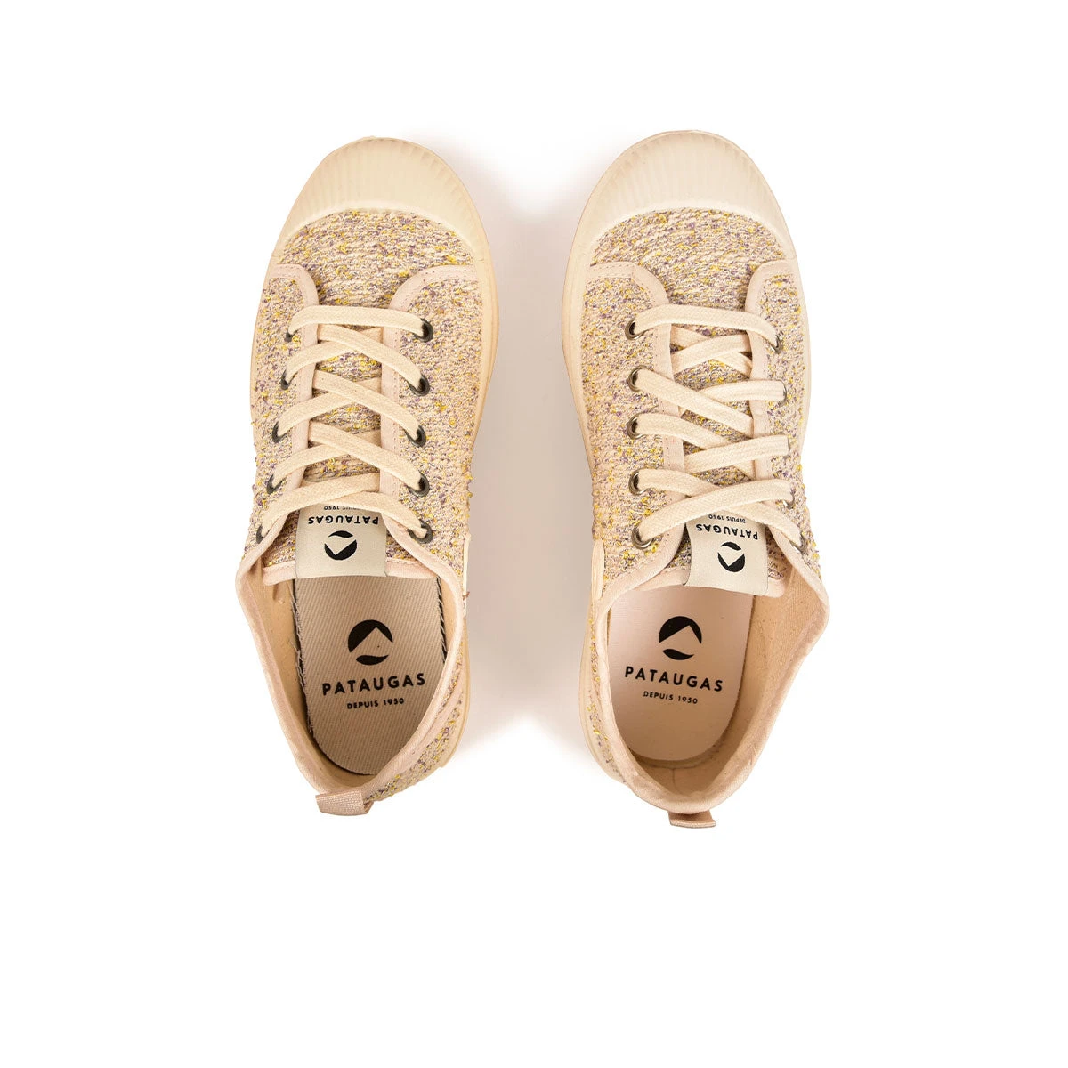 Laissez-vous sĂ©duire par notre basket femme ETCHE, retravaillĂ© cette saison avec un tout nouveau tissus bouclette couleur lilas, tissĂ© en Espagne inspirĂ© des codes du design et de l’ameublement, le jeu de fils multicolore dĂ©licat apporte douceur et sophistication. Toujours montĂ©e sur une semelle en caoutchouc naturel, qui permet Ă cette basket d’ĂŞtre plus flexible et plus souple lors de la marche. Cette chaussure en coton recyclĂ© est très tendance, vous apportera confort et lĂ©gèretĂ© lors de vos balades estivales grâce Ă sa tige haute et sa semelle striĂ©e. Petit plus, sa semelle intĂ©rieure est amovible ce qui est très pratique si vous souhaitez y placer les vĂ´tres.