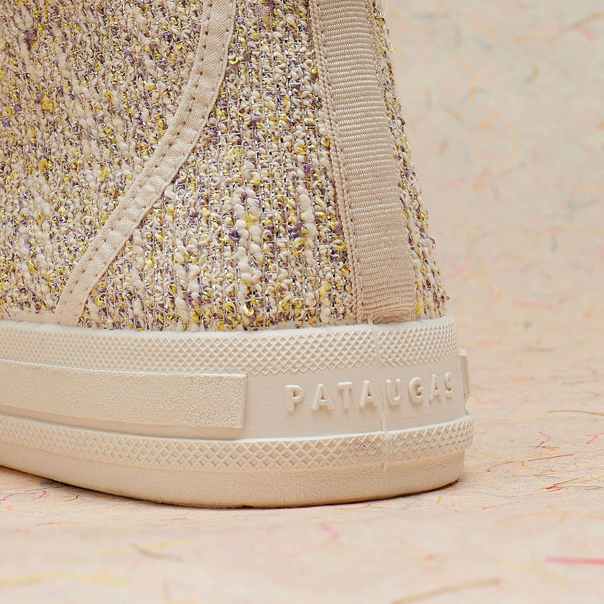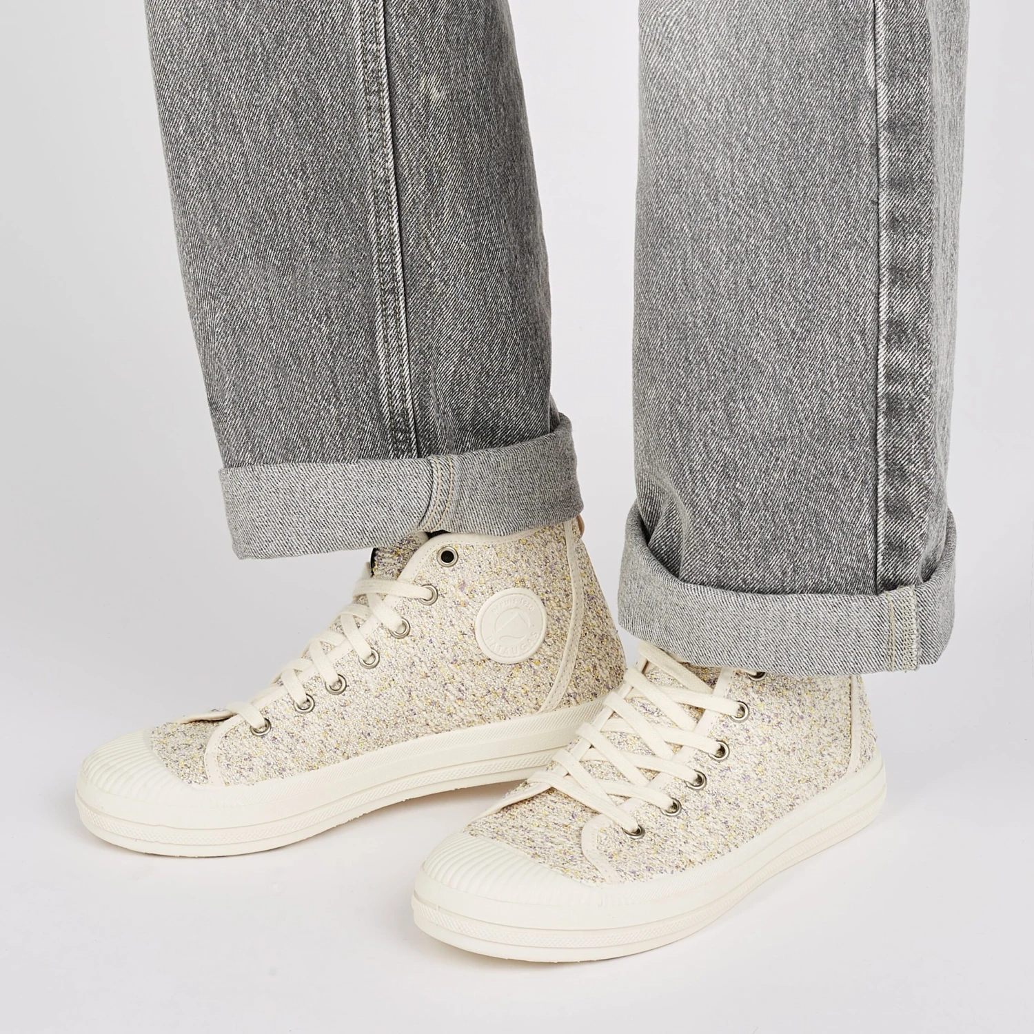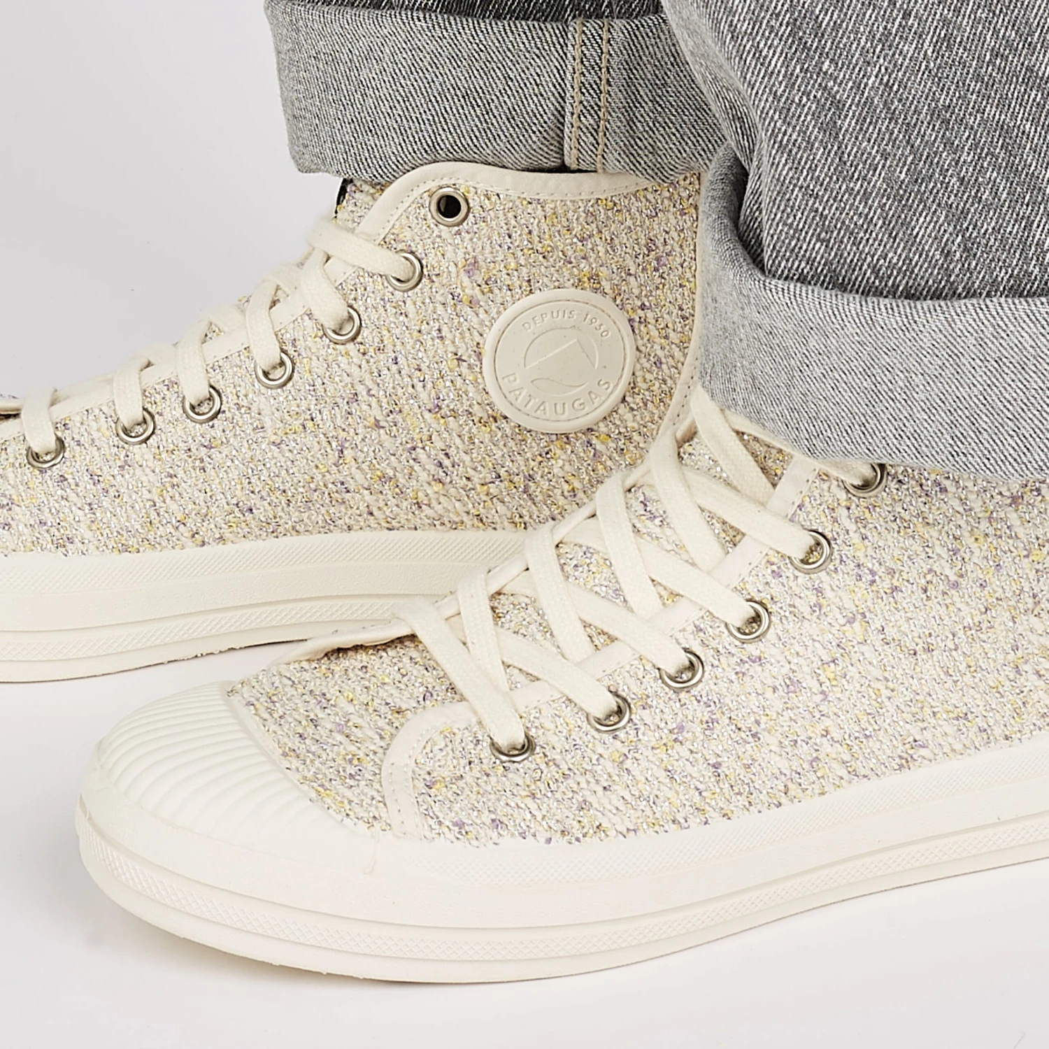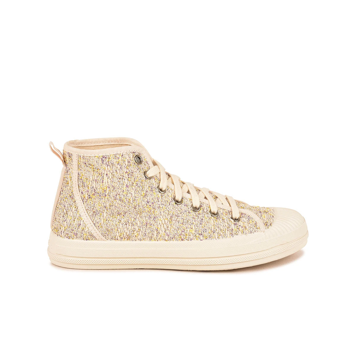 DĂ©couvrez notre basket femme ETCHE avec un tout nouveau tissus bouclette raffinĂ© tissĂ© en Espagne inspirĂ© des codes du design et de l’ameublement, le jeu de fils multicolore dĂ©licat apporte douceur et sophistication couleur lilas. Cette basket en coton recyclĂ© est très tendance, vous apportera confort et lĂ©gèretĂ© lors de vos balades estivales grâce Ă sa tige haute et sa semelle striĂ©e. MontĂ©e sur une semelle en caoutchouc naturel, permet Ă cette une basket d’ĂŞtre plus flexible et plus souple. Petit plus, sa semelle intĂ©rieure est amovible ce qui est très pratique si vous souhaitez y placer les vĂ´tres.