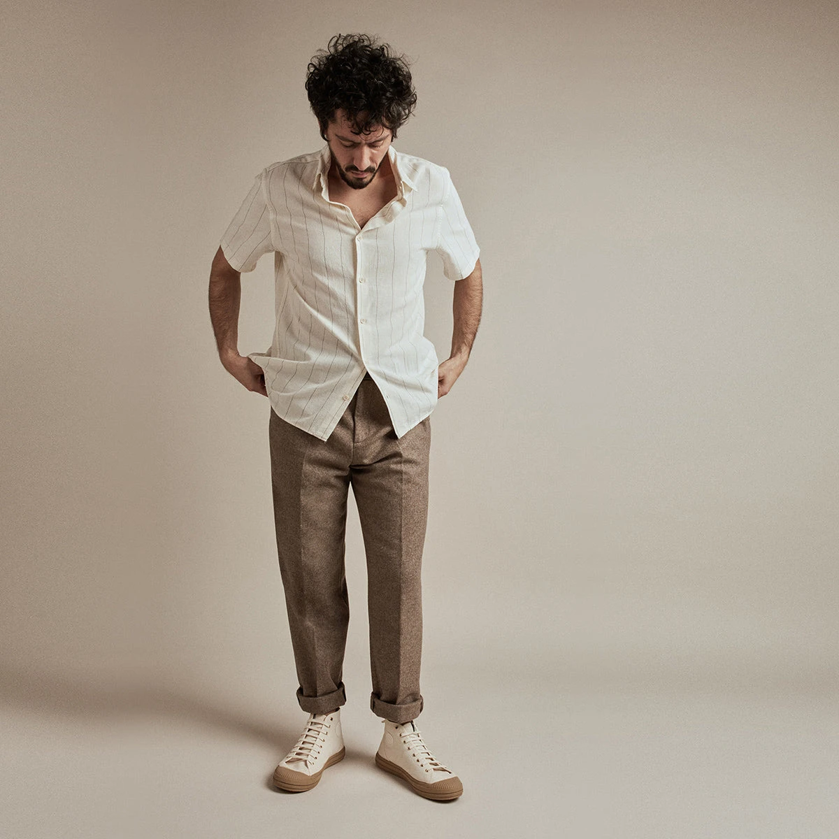 Optez cette saison pour la crĂ©ation ETCHE, basket homme en toile idĂ©ale pour allier lĂ©gèretĂ© et style. Cette chaussure est munie d’une toile rĂ©sistante couleur Ă©cru en coton recyclĂ© et est montĂ©e sur une semelle en caoutchouc naturel. Cette matière confère Ă la semelle plus de lĂ©gèretĂ© et plus de souplesse.