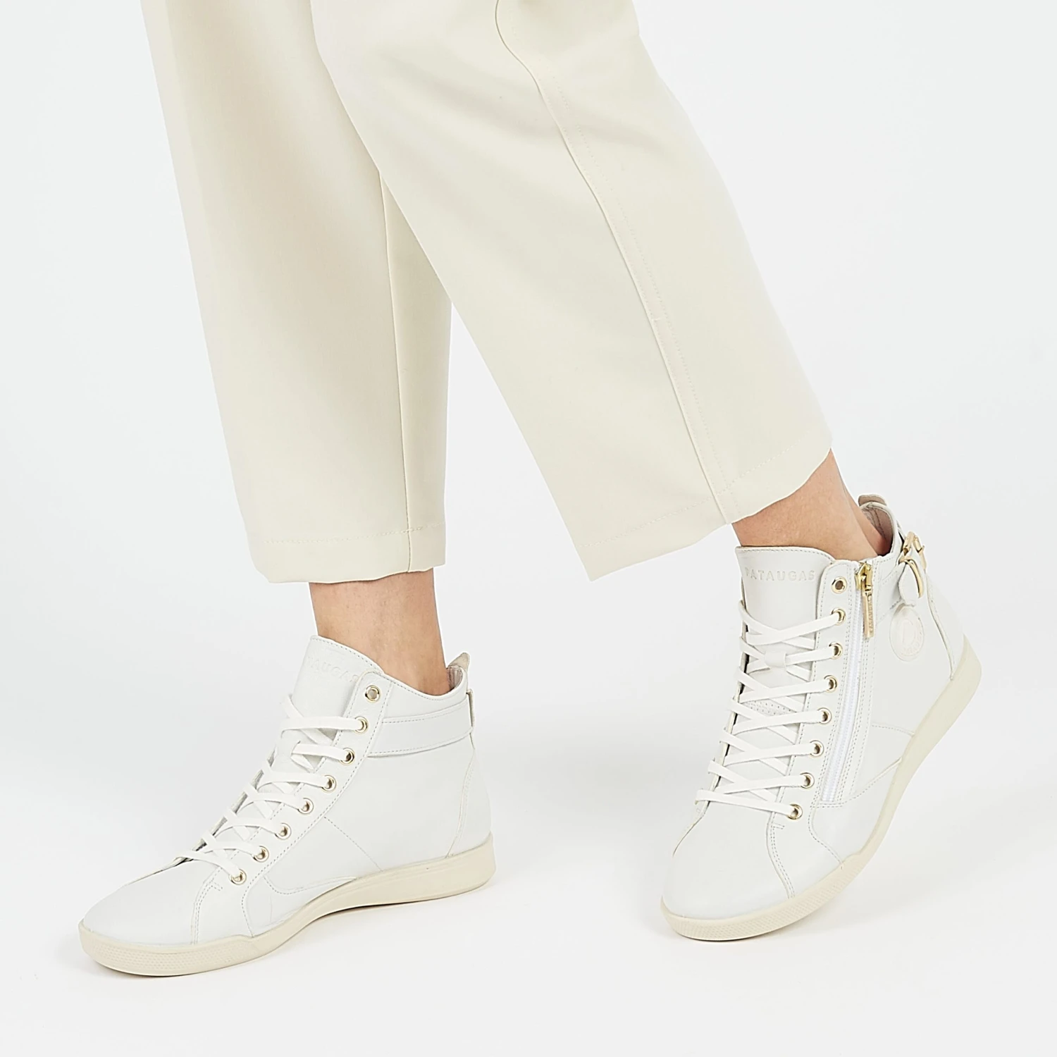 La basket montante PALME est la chaussure parfaite pour vous accompagner toute la saison. Cette basket femme est composĂ©e d’un cuir fin et rĂ©sistant et est montĂ©e sur une semelle très lĂ©gère et flexible. Sa couleur blanche est parfaite pour donner de l’Ă©clat Ă vos tenues. Petit plus: cette chaussure est munie d’une fermeture Ă©clair sur le cĂ´tĂ© afin de vous Ă©viter de faire vos lacets.