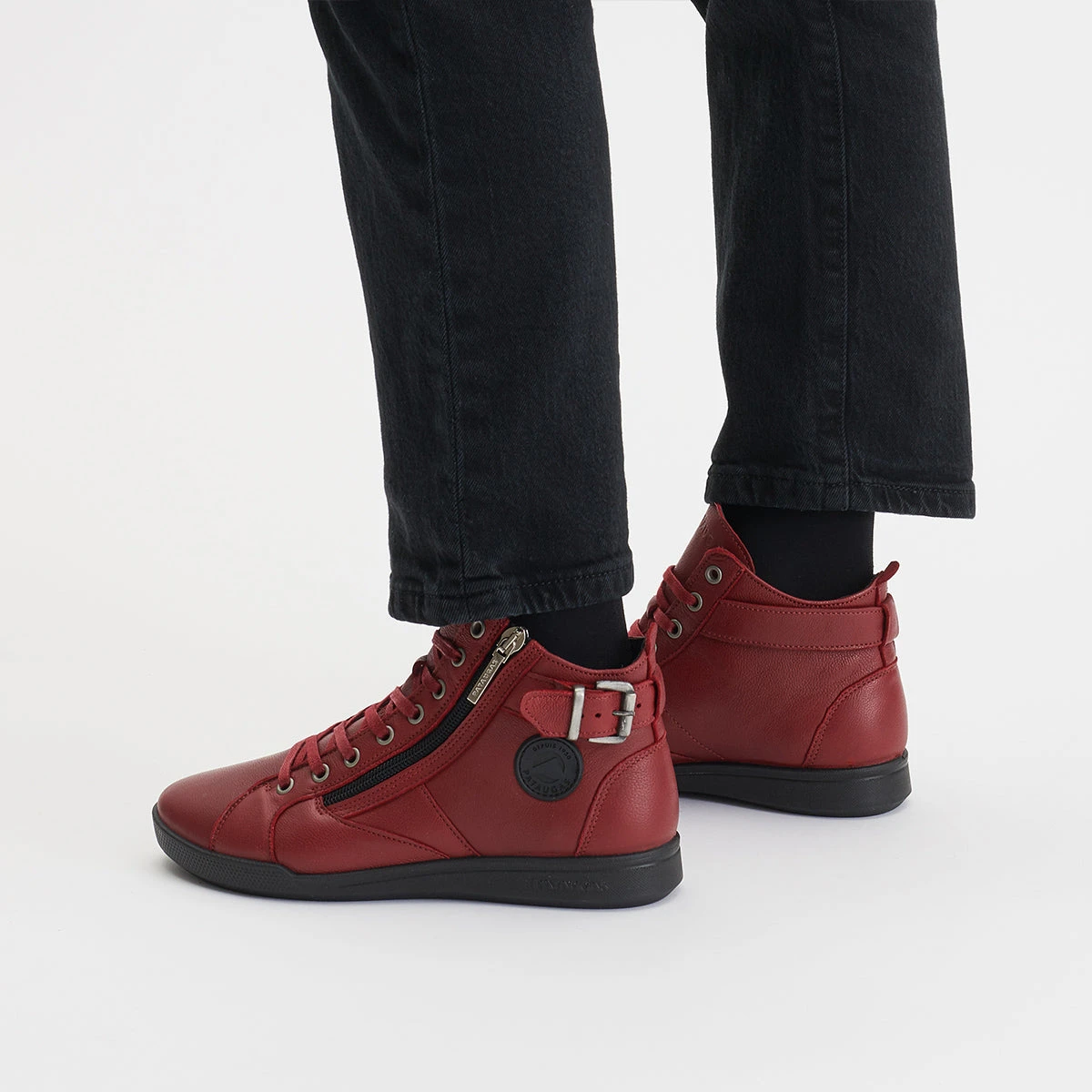 La basket montante Palme Sangria, modèle iconique de la marque Pataugas revient sur la scène avec une version retravaillĂ©e et très fĂ©minine. Grâce Ă un nouveau logo et son cuir fin, cette chaussure en cuir est une valeur sure. Sa semelle FLEX est injectĂ©e pour un confort et un maintien parfait. Sa couleur rouge sangria est lumineuse et donnera du pep’s Ă vos tenues de saison. Ce modèle taille petit.